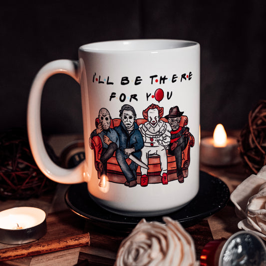 Ill Be There For You Mug | Friends Horror Villains | Funny Halloween Mug | Jason Freddy Michael Myers IT Slasher Mug | Masked Killers | Halloween Coffee Mug