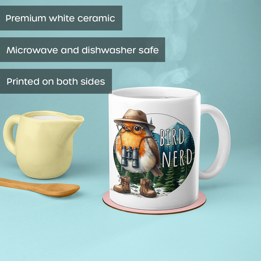 Bird Nerd Coffee Mug, Birding Beverage Cup, Nature Lover, Funny Bird Watcher Gift, Cute Illustrated Robin - Ceramic 11oz 15oz