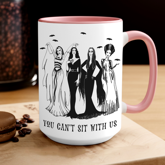 You Can't Sit With Us Mug | Goth Girls Witchy Coffee Mug | Lily Munster Vampira Morticia Addams | Bride Of Frankenstein | Gothic Queens | Vintage Vibes - Ceramic